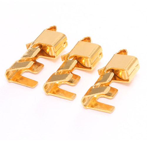 2. 化學(xué)鍍金法:利用一種特殊的化學(xué)反應(yīng),在插簧表面生成一層金屬化合物的方法來實(shí)現(xiàn)鍍金。這種方法操作簡(jiǎn)單,具有鍍層均勻、成本低等優(yōu)點(diǎn),可以產(chǎn)生均勻且良好的鍍層。
